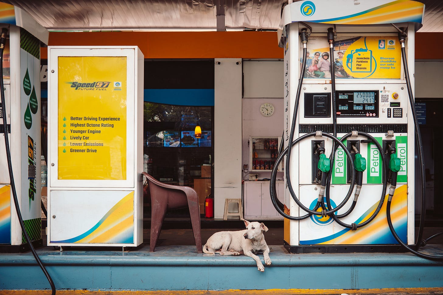 I don’t make a habit of offering practical travel advice but I would say that Uber is actually really good for getting around India. If you have a mobile phone with access to their app (I use an AloSIM e-SIM, which I purchase before leaving home) it makes travel a breeze. Cheap and reliable it saves a lot of hassle. We even took to splashing out on the fancier Uber Black — still much cheaper than at home but I really appreciate that you can ask them to drive slowly and carefully and, if you want, even turn on the A/C. Uber even sent us a message to check we were OK because we had been stationary for a long time, but we were actually just filling up with gas at a service station where I made the photograph above.